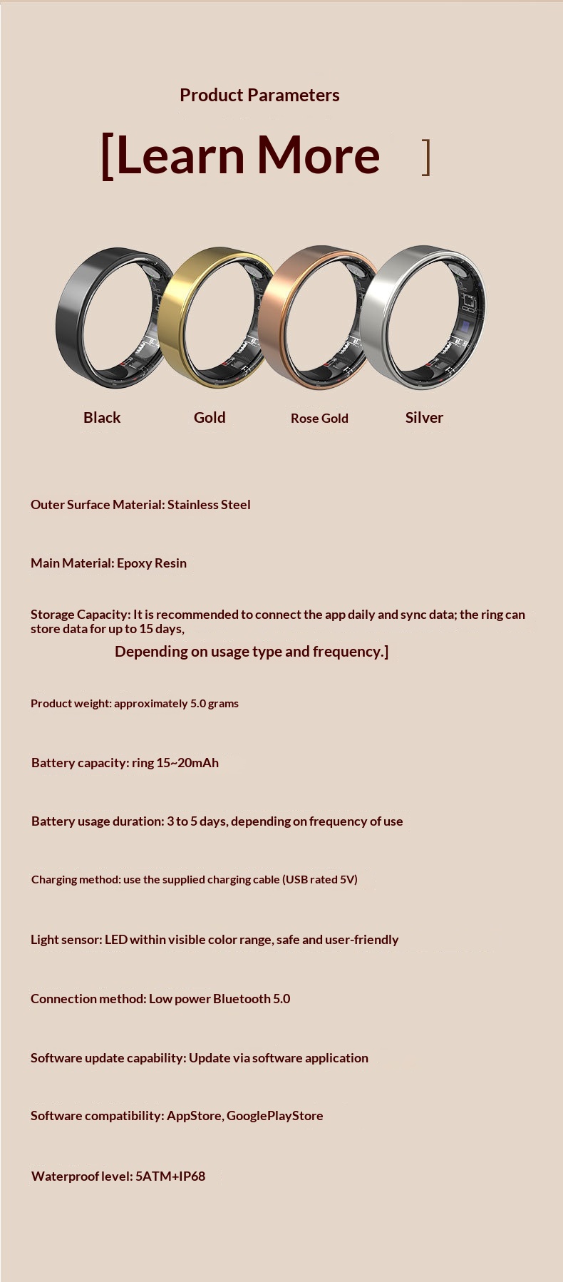 Multi-functional Waterproof Smart Ring For Health Monitoring And Fitness Tracking